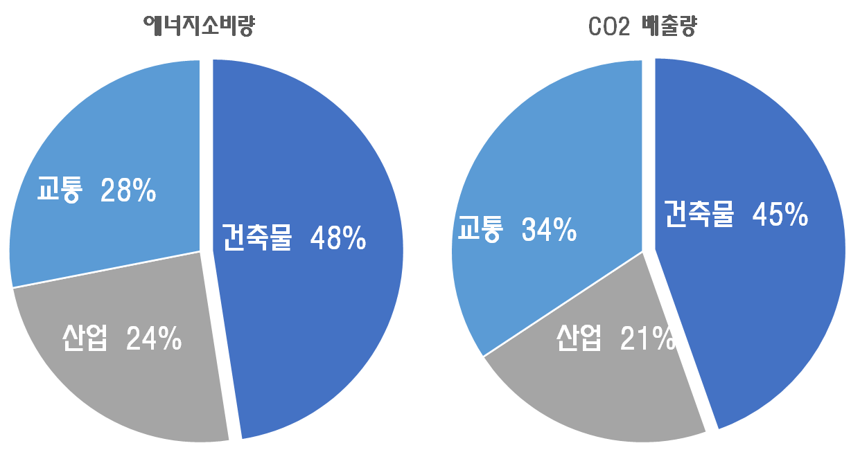 3) 건축물은 에너지 소비의 1/3, 자원소비의 40%차지
